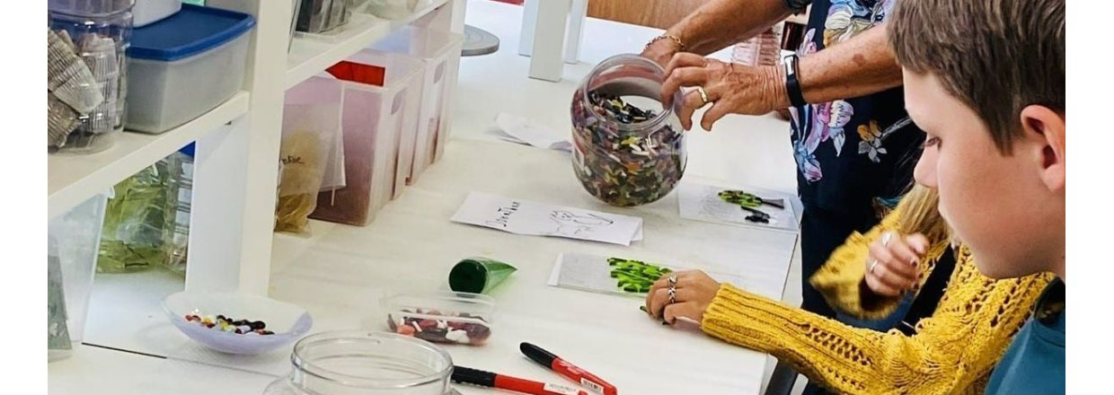 Glaskunst-workshops for børn med voksne i alle skoleferier.